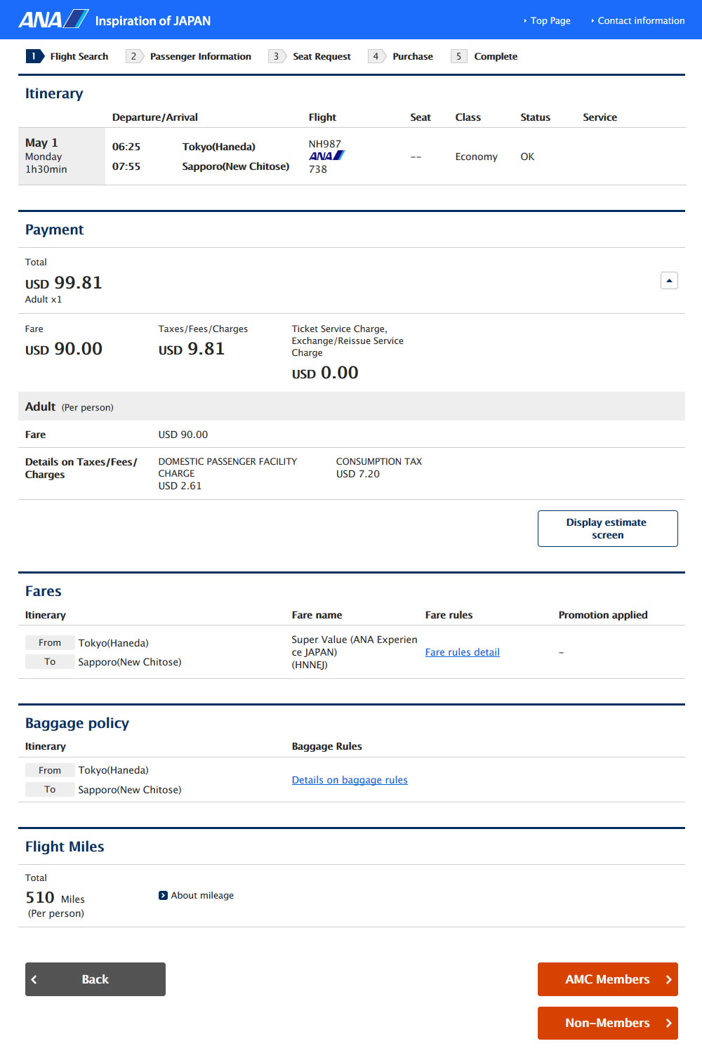 Total (one way) Travel time: 2 hours 25 minutes (save 5 hours 35 minutes) Special price:11,790 yen(save 19,610 yen p.p.) |