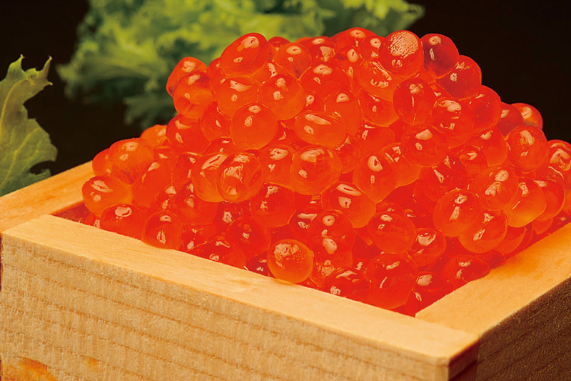 Roe of salmons and pink salmons is a gem of the sea that contains plenty of nutrients from the Sea of Okhotsk. Roe pickled in salt is called salted salmon roe, and the egg sacs are removed from the salted salmon roe and seasoned with salt and soy sauce is called Ikura.