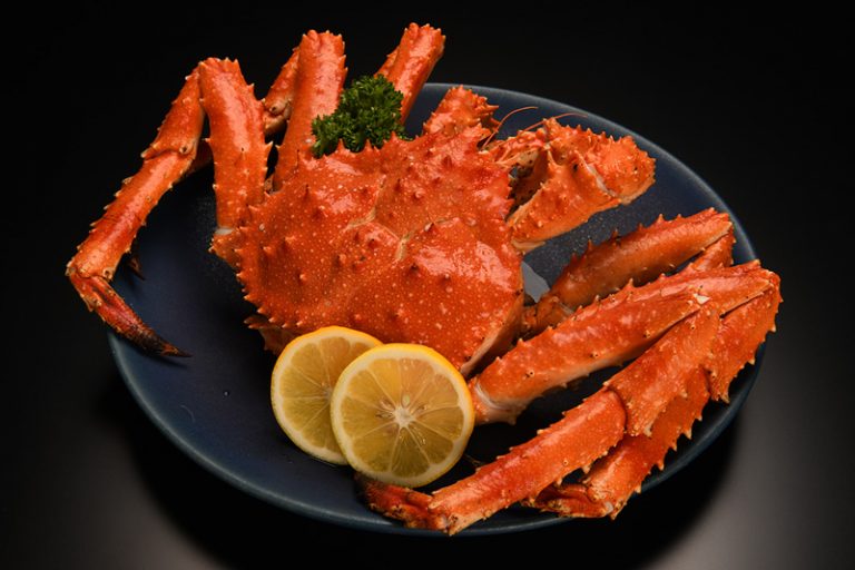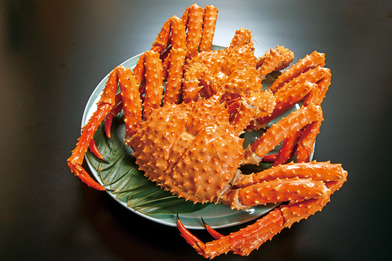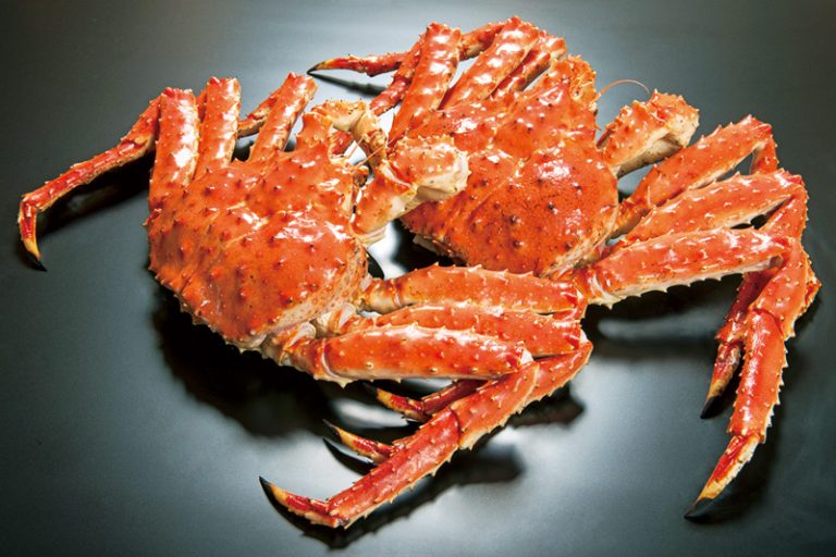 Red king crab “taraba-gani” and blue king crab “Abura-gani” are called the kings of crab. Both red king crab and blue king crab are caught mainly from around summer. Red king crab is caught outside Hokkaido, while most blue king crab is caught off the coast of Abashiri. Red king crab and blue king crab are similar in appearance. The common way to distinguish them is the number of protrusions in the center of the shell. The red king crab has six and the blue king crab has four . Also, the blue king crab is characterized by its whitish soles and long fingernails. The thick red king crab and blue king crab from Abashiri are called king crabs, and their sweetness and fragrance is among the best in the world.