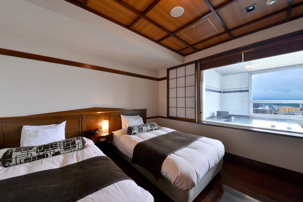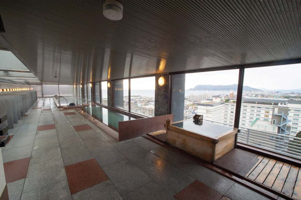 Onsen : Open-air bath with a view, large public bath with a view, sauna, private rock bath