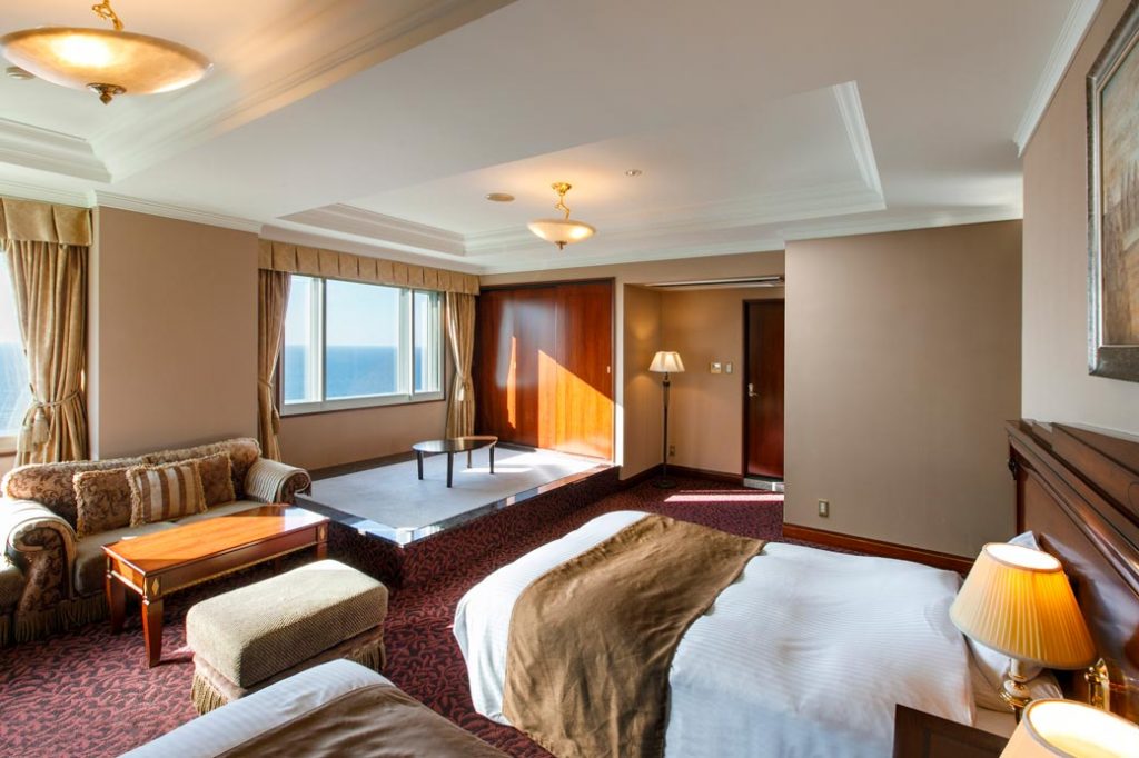 All rooms with open-air hot spring / Ocean view / Large underground bath / Safety box / Equipment rental with TV in room / Amenities / Bathrobes (rental) / Vending machines / Creative French cuisine / Bar lounge / Smoking corner / Welcome kids