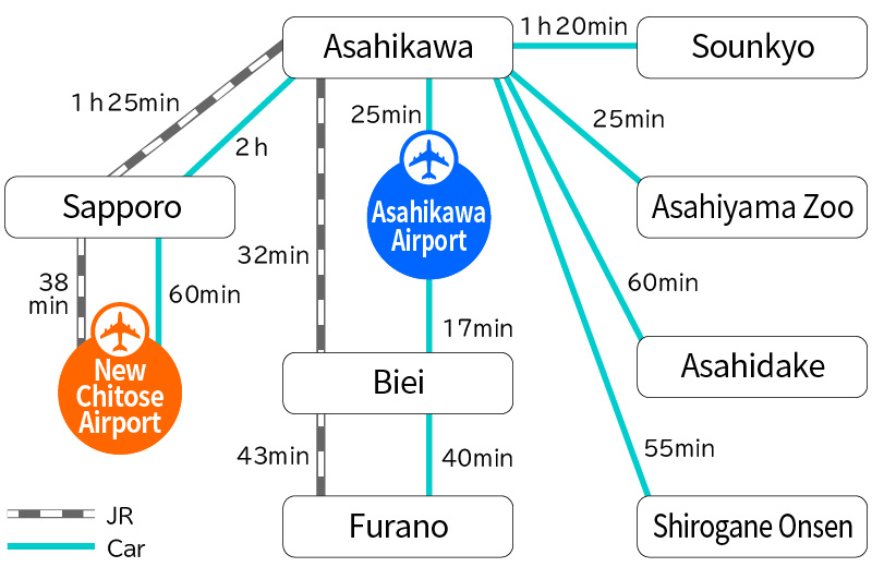 Asahikawa Airport, Asahidake, Furano, Biei, Taisetsu Liner