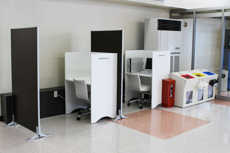 A PC desk equipped with a power outlet and wired LAN is also available to use free of charge.