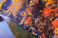 Only an hour's drive from the center of Sapporo, you can enjoy beautiful autumn leaves through the valley. Jozankei is the valley of the Toyohira River, that has its headwaters behind the Houheikyo Dam. Jozankei is the mother river that runs through the center of Sapporo.