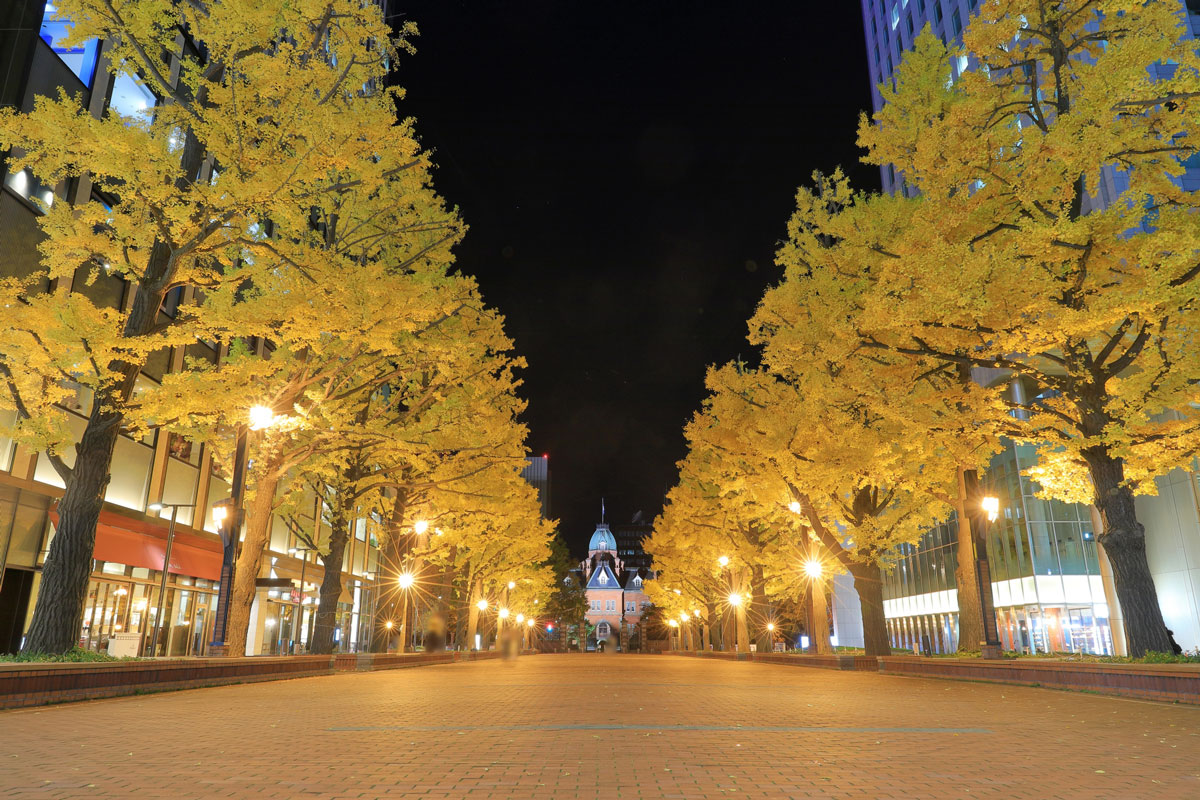 Please check out Around Hokkaido University walking MAP. Start from the north exit of Sapporo Station. ① Head towards Ginkgo Avenue. This is a popular place featured in many TV shows and magazines. The shining golden tree tunnel is stunning. ③ Poplar Avenue is also beautiful. The inside of Hokkaido University is filled with trees that have been carefully preserved to protect a virgin forest. As you leave the campus, ④ check out the magnificent autumn leaves of the Seika-tei Pavilion. You will then pass by the botanical garden and proceed to the garden of the Hokkaido Government Office.