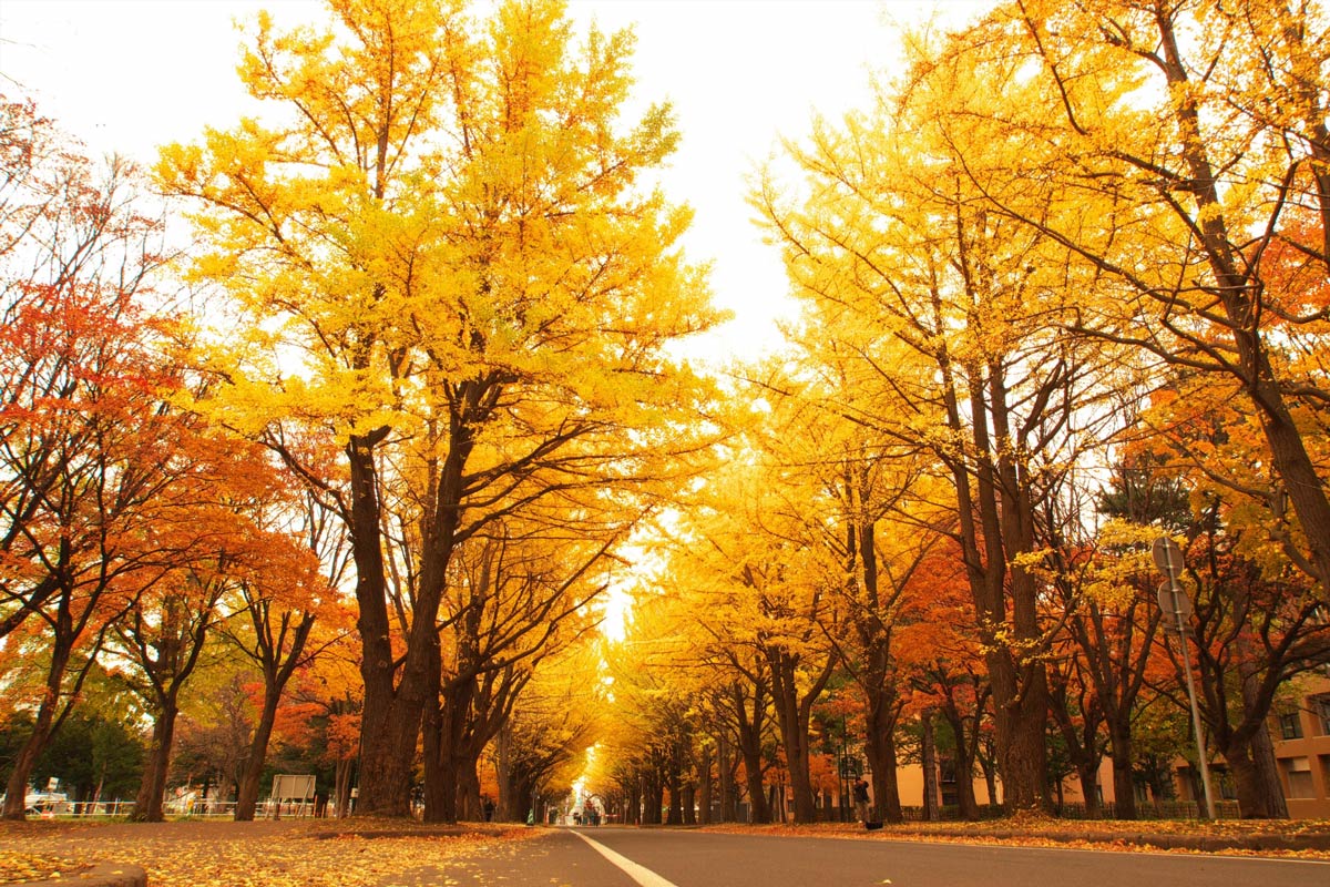 The center of Sapporo has a lot of greenery and is surprisingly close to areas suitable for viewing the autumn leaves, such as Odori Park in the center of Sapporo, the garden of the Hokkaido Government Office, the botanical garden, the Hokkaido University campus, Nakajima Park, Maruyama Park and Hokkaido Shrine Chinju Forest. You can also feel close to autumn leaves along the Toyohira River and from the center of the city to Mt. Okura or Mt. Maruyama.