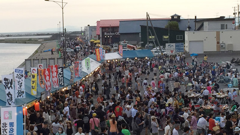You can enjoy delicious food and atmosphere at the beginning of autumn under the blue sky. The aroma of seafood caught in Okhotsk like scallops will spread over the festival venue.