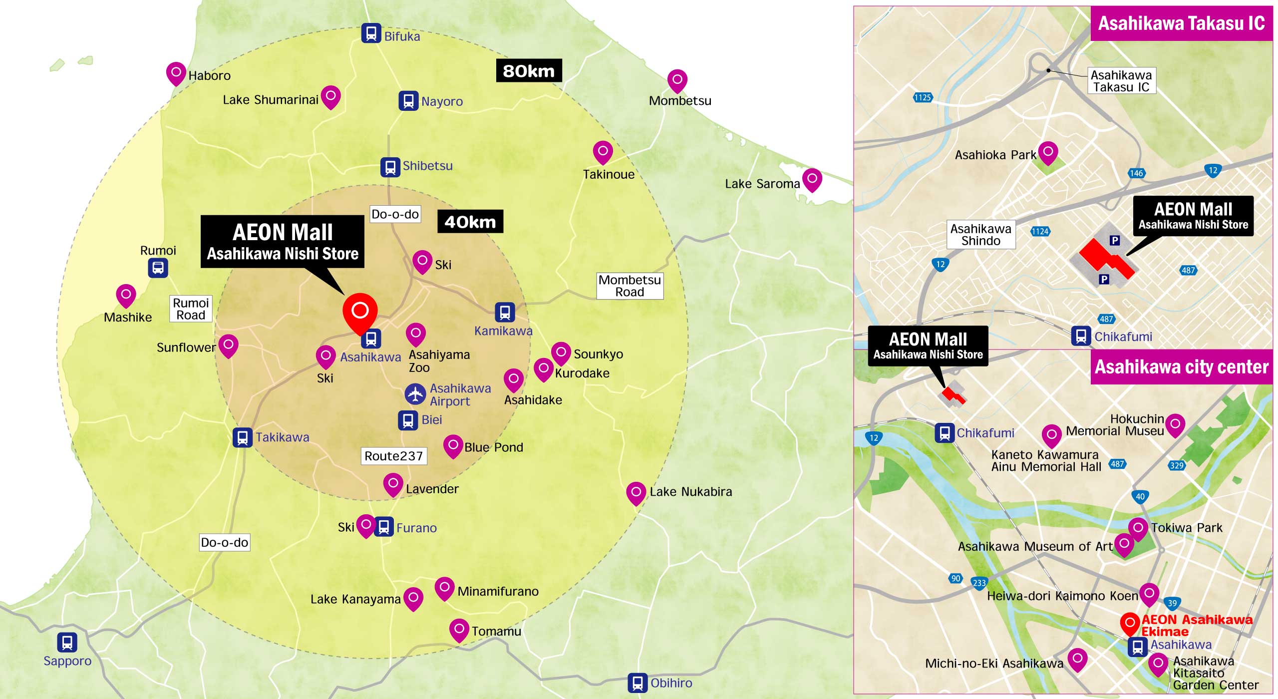 AEON MALL Asahikawa Nishi is the largest shopping mall in Hokkaido’s North and East Hokkaido areas.