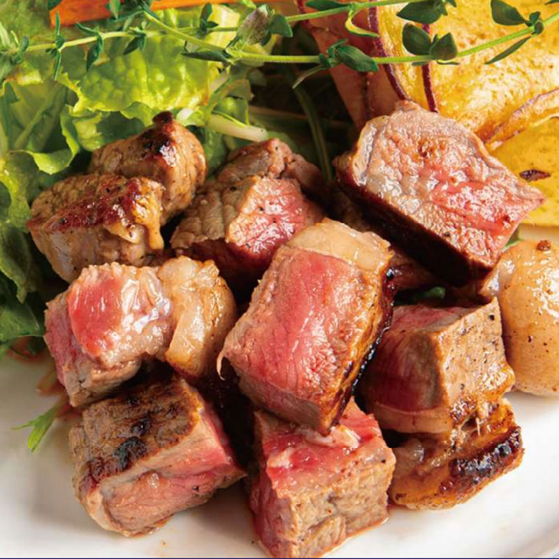 Bite-sized pieces of Wagyu beef from Yakumo Town, Hokkaido