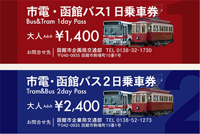 You can use the exclusive 1 day pass for the Hakodate bus or the 1 and 2 day tickets used for both streetcars and buses or IC cards used mutually among national transport services any