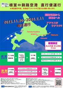 Weekdays : Departing Kushiro Ekimae Bus Terminal 1:10p.m. , 4:00p.m. , 2 round trips per day