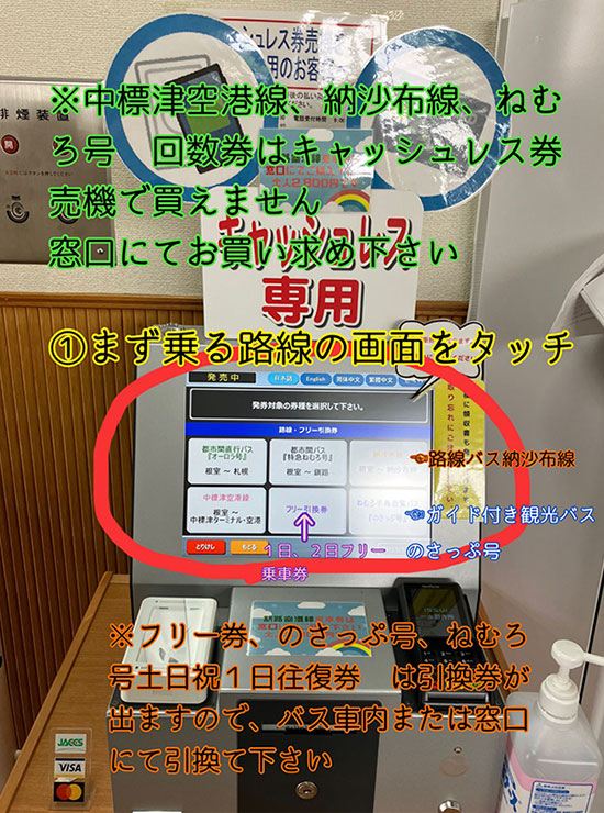For "1-day, 2-day unlimited ride passes" and the "Tourist Bus Nosappu-go," a voucher will be issued, so please ask the driver on the bus to exchange it for a boarding pass.