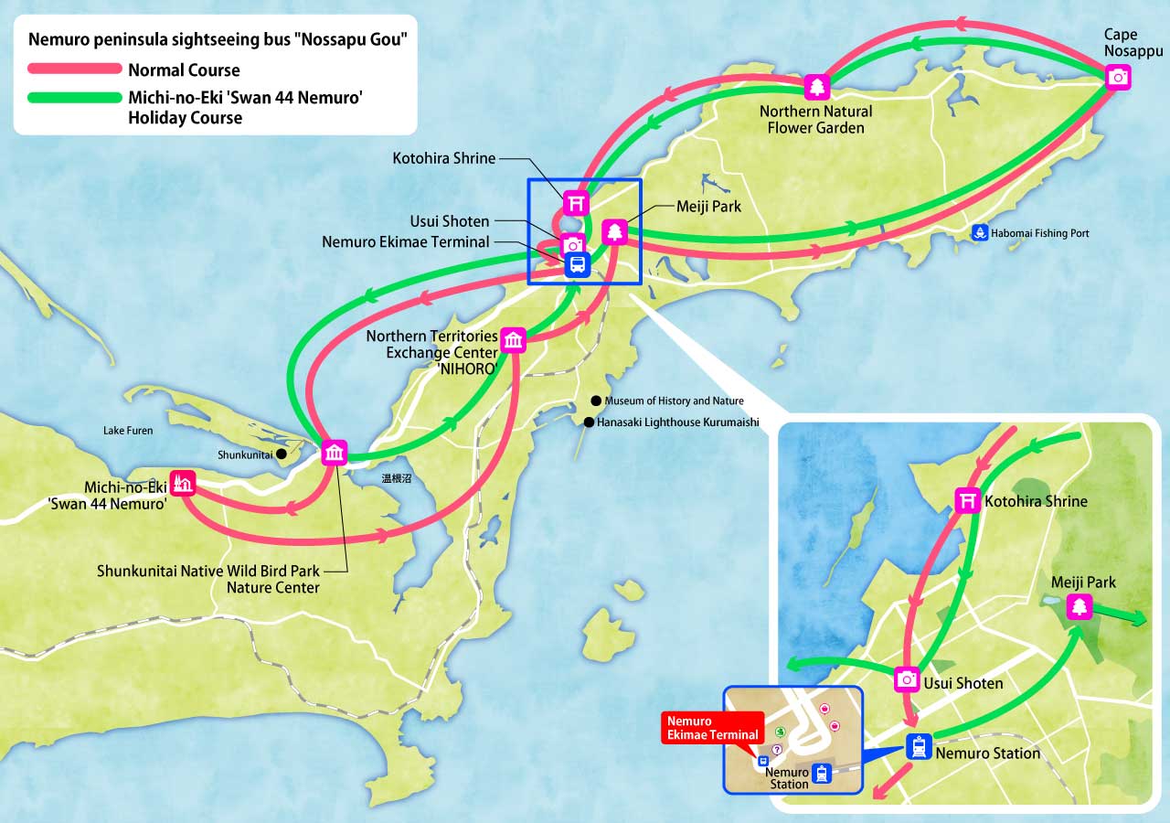 You can take the Nosappu Line from Nemuro Ekimae Bus Terminal. Get off at “Nosappu Misaki”
