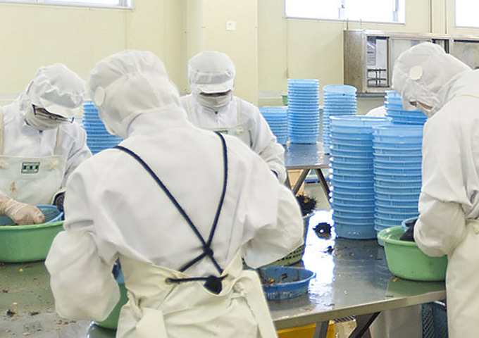 Features 1. processing of non-additive sea urchins and shipment 2. shell cracking and packing upon orders 3. production of processed sea urchins |