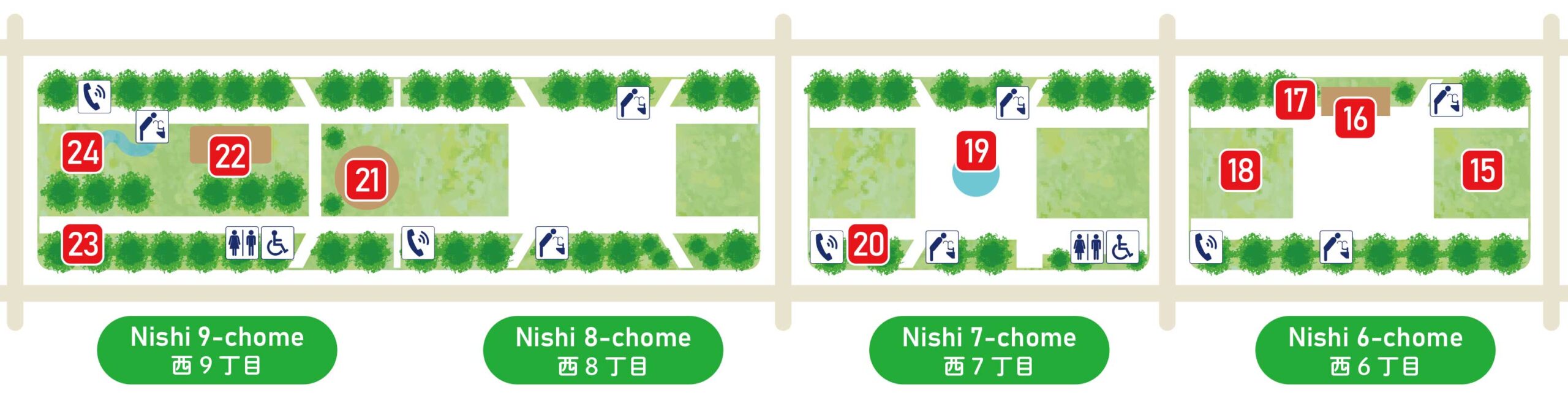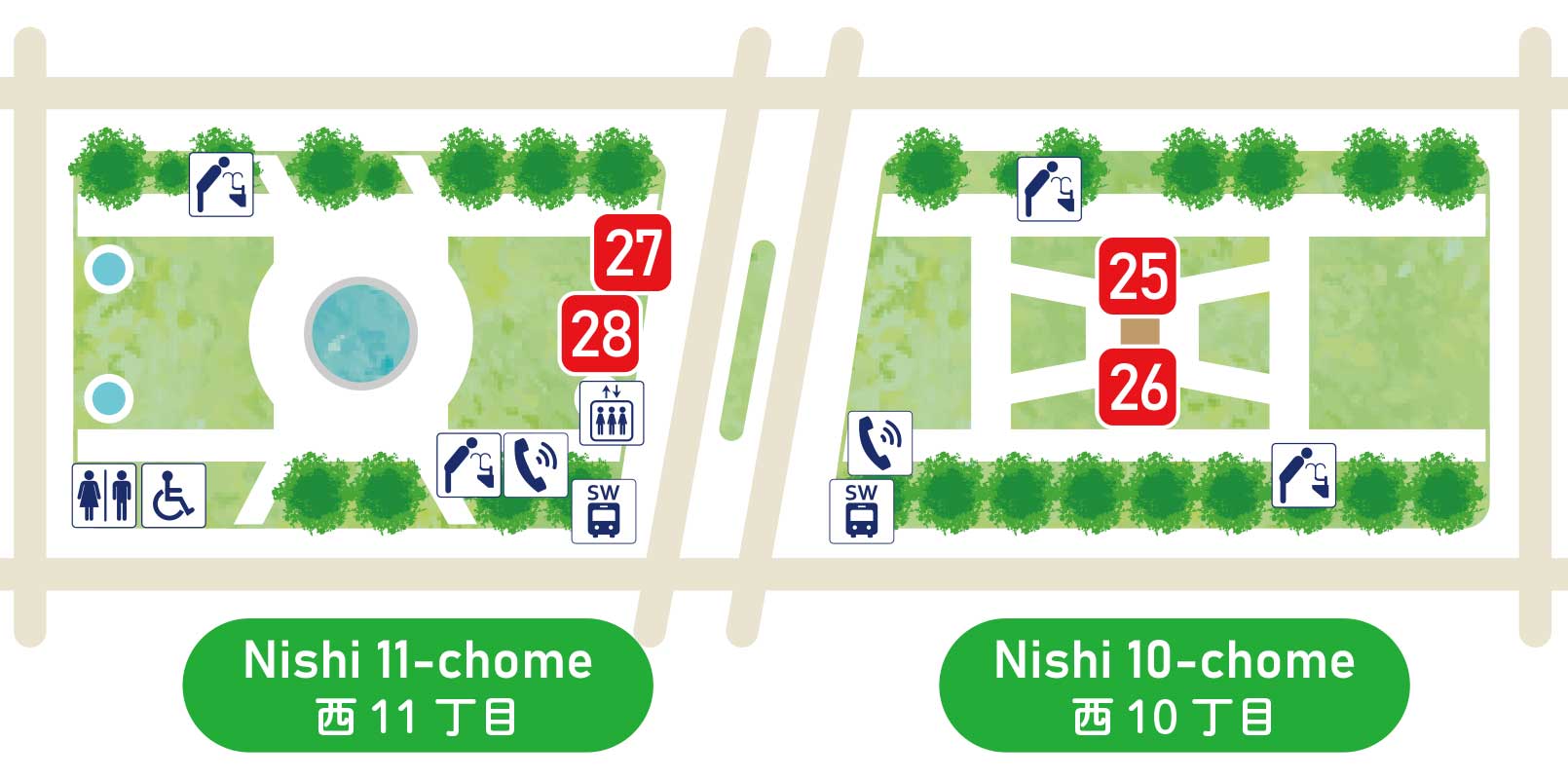 We recommend the course from Nishi 13-chome to the TV Tower at Nishi 1-chome.