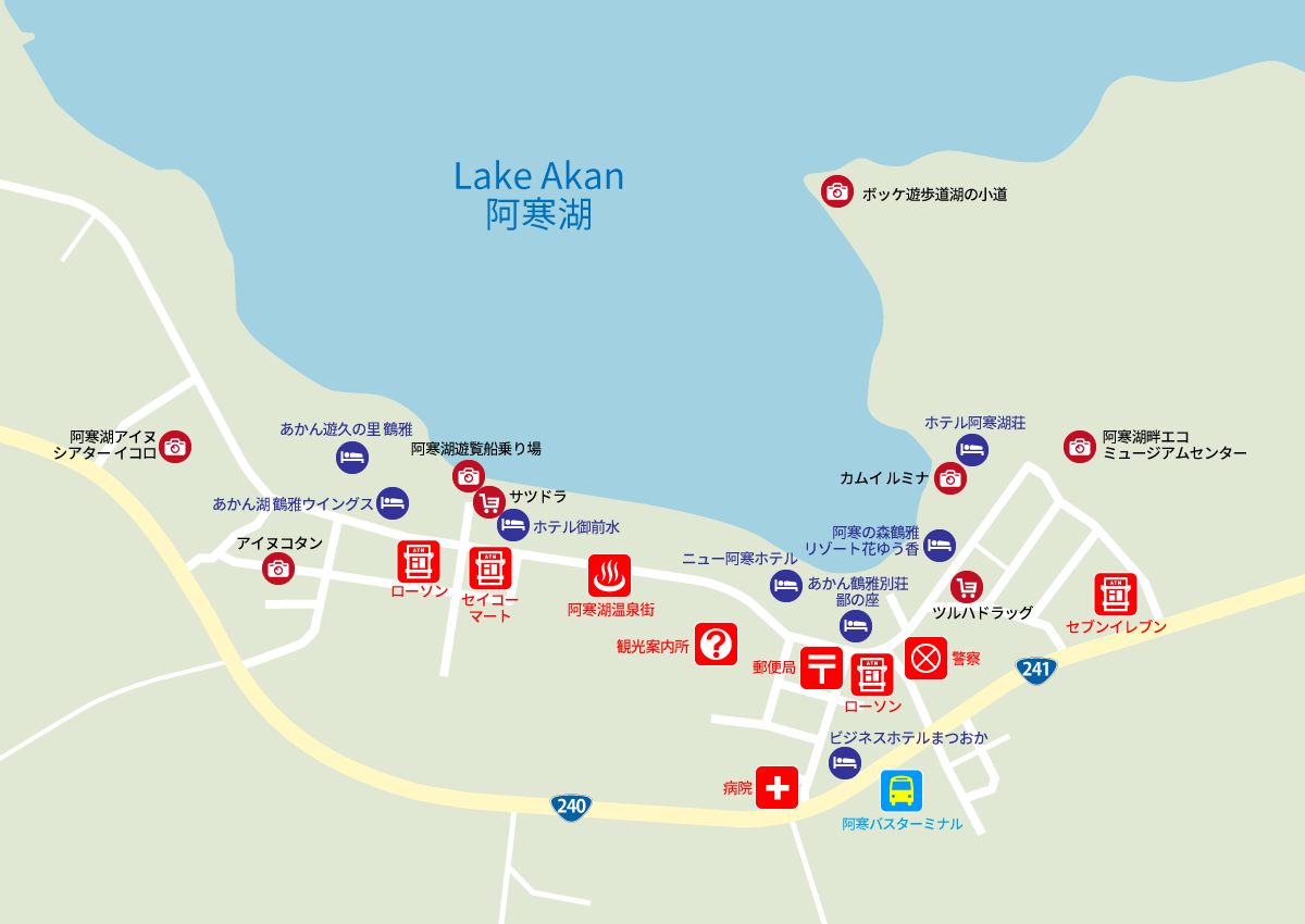 - Wi-Fi is available in Lake Akan Onsen town, Tourist Information Center, Michinoeki Akantancho village