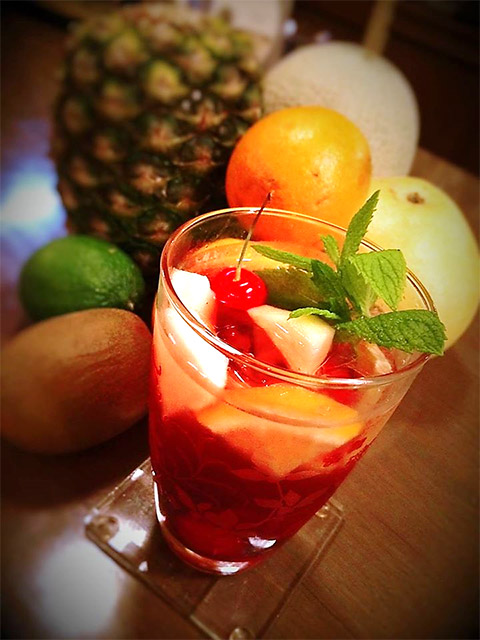 Canal Street Sangria with fruit soaked in wine. Even those who don't like wine can enjoy it.